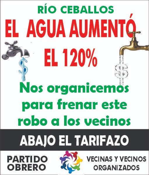 Así lo afirman Vecinos y Vecinas Organizados de Río Ceballos, junto al Partido Obrero de dicha ciudad de las Sierras Chicas cordobesas. Exigen la eliminación inmediata del sistema ilegal adoptado por la Cooperativa de Agua local, de sumar el “aporte de capital” a la factura de consumo, la devolución del dinero pagado en exceso por los