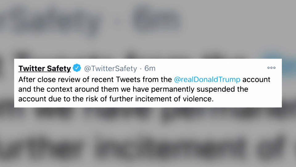 EEUU: Twitter suspende la cuenta de Trump de forma permanente al tiempo que las grandes empresas de tecnología se distancian del presidente y de la extrema derecha