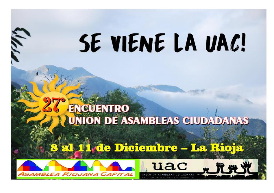 Desde el 8 al 11 de diciembre de 2016 nuestra ciudad será sede del 27 Encuentro de la Unión de Asambleas Ciudadanas (UAC) que reúne a delegados de las Asambleas y colectivos socioambientales de Argentina y de Latinoamérica.