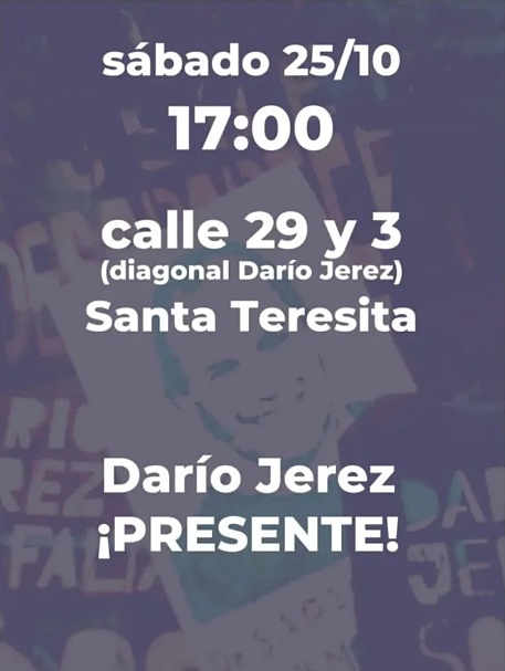 Será este 25 de octubre, bajo el lema “A 24 años de su desaparición, el arte se hace voz”. La convocatoria es a las 17 en el cruce de las calles 29 y 3, donde Darío fue visto por última vez, en la localidad de Santa Teresita, Partido de La Costa. Su familia y la…